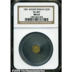 1881 25C Indian Round 25 Cents, BG-887, R.3, MS63