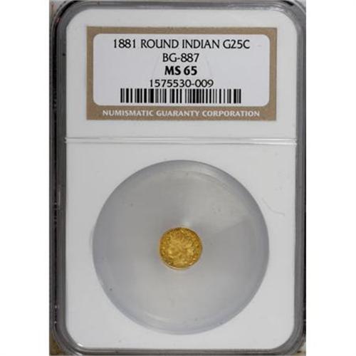 1881 25C Indian Round 25 Cents, BG-887, R.3, MS65 NGC