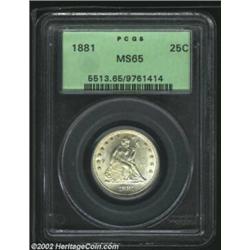 1881 25C MS65 PCGS. A lightly toned and lustrous Gem that has a seemingly pristine reverse. Well str