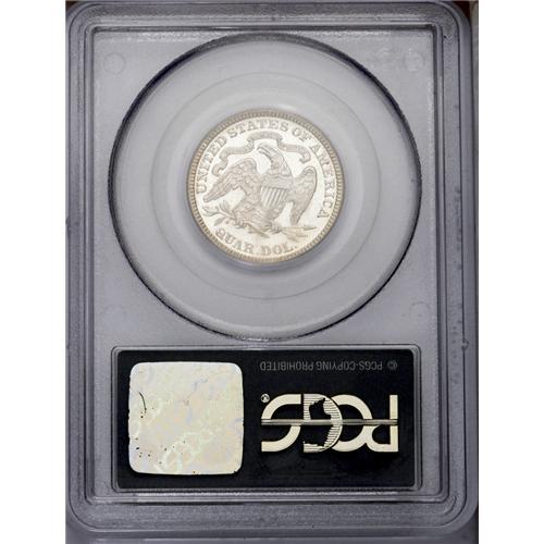 <B>1881 25C PR65 PCGS.</B></I> Dazzling reflectivity from the fields confirms the eye appeal of this lightly toned and sharply struck Gem. Noticeable cameo contrast is present, but not recognized by the green label holder. Repunching is noted within the loops of the 8s. Another low mintage, post-Morgan Dollar date; 975 proofs were struck along with 12,000 commercial pieces.