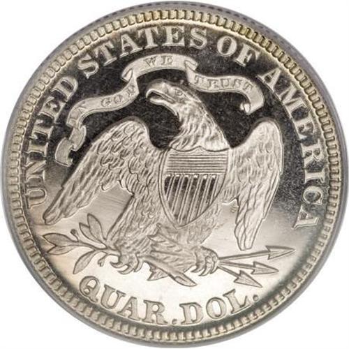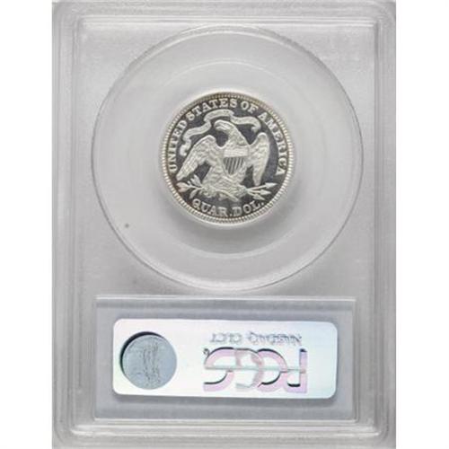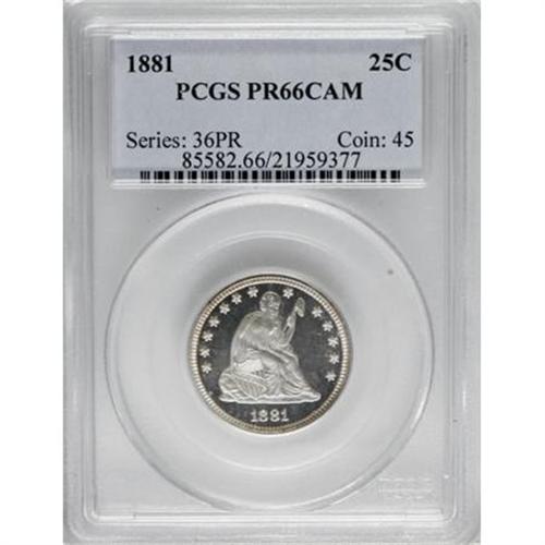 <B>1881 25C PR66 Cameo PCGS.</B></I> The ice-white devices provide dramatic contrast with the glass-like fields. A meticulously struck and carefully preserved specimen. The reverse is essentially pristine. Brilliant aside from a hint of russet on the rims. The date is lightly repunched. A mere 975 proofs fell from the dies. Population: 14 in 66 Cameo, 7 finer (6/07).<BR><BR><b>Shipping:</b> Coins & Currency (<a target="_blank" href="http://www.heritageauctions.com/common/shipping.php">view shipping information</a>\)