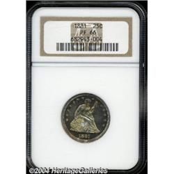 <B>1881<25C> PR66 NGC.</B></I> This is an intriguing and colorful Gem proof with light cameo contrast, especially on the obverse. The obverse is sharply defined with amber, russet, and blue toning. The reverse also has sharp design features under sea-green and heather toning. The date is doubled with extra lines in the upper loop of the first 8 and in the lower loop of the second 8. Population: 29 in 66, 19 finer (7/04). <BR><BR><B>Important notice:</B> Heritage usually auctions material at the rate of 200-250 lots per hour. On some occasions eBay Live bid software or the Internet may not be able to keep up with the pace of the auction. We recommend placing a realistic absentee bid now as insurance to avoid disappointment. Occasionally the auctioneer may eliminate or reject an eBay Live bid, and the auctioneer may also reopen a lot after the close of the eBay live bidding (usually because we missed an audience bid), and may reject your bid even if it shows you as the winning bidder. By bidding via eBay Live, you agree that Heritage may award the lot to another bidder at its sole discretion under the circumstances described above or any other reasonable circumstances. Since eBay bids are not shown to us until we open the lot on the floor, we treat those bids just like floor bids. In most cases the floor responds before the eBay bid is presented to us, due to Internet lag time, so for consistency we have made it a policy that floor bids are always considered first over tie eBay live bids. Also please note that all Heritage lots purchased through eBay Live carry a 20% Buyer's Premium. Please make sure you read the Terms and Conditions before you bid. </span></font></tr></table></td></tr></table>