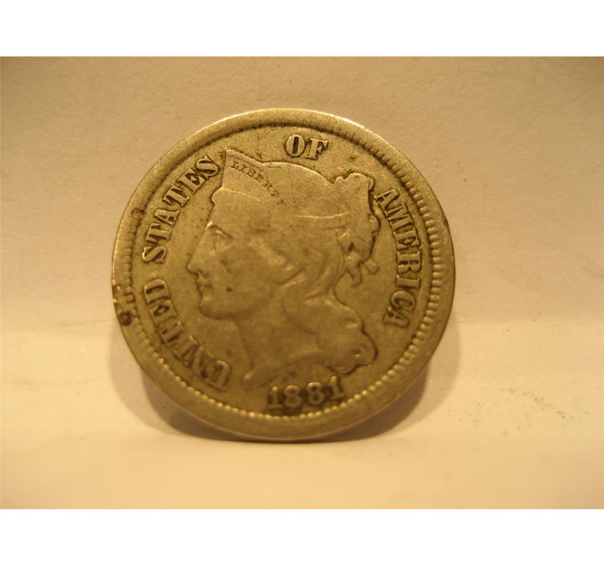 (1) 1881 3 CENT NICKEL OLD POST CIVIL WAR COIN