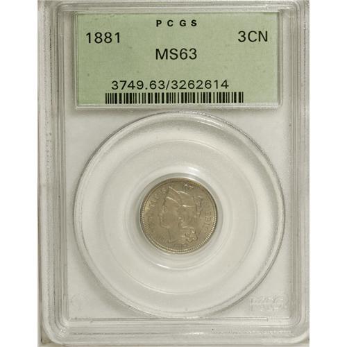 1881 3CN MS63 PCGS. PCGS Population (96/241). NGC