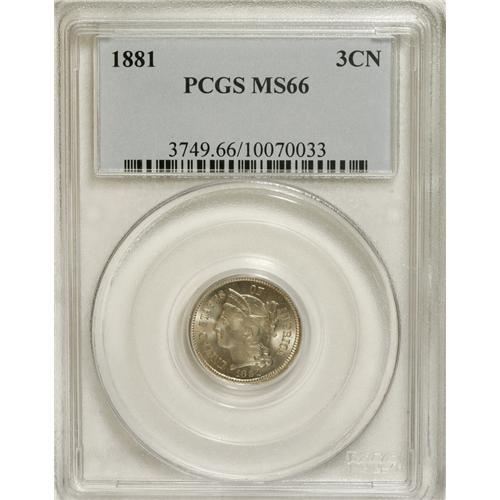 1881 3CN MS66 PCGS. A powerfully impressed Premium Gem