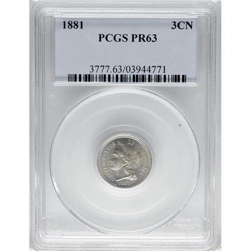 1881 3CN PR63 PCGS. PCGS Population (61/862). NGC
