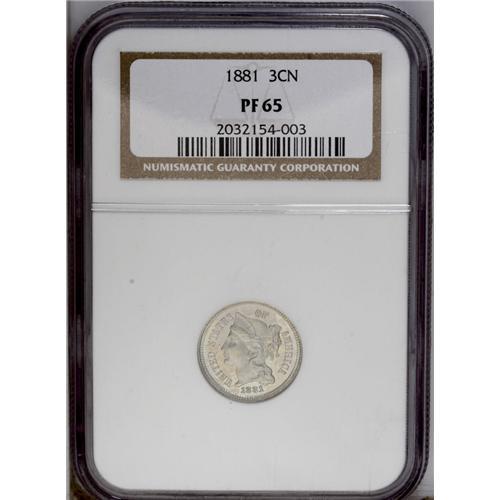 1881 3CN PR65 NGC. A sharply defined Gem proof with at 1881[3CN] PR65 NGC.