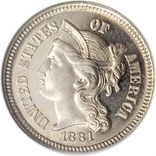 <B>1881 Eight-Piece Proof Set PR63 to PR66 NGC.</B></I> The NGC holders that house the set have consecutive serial numbers.<BR><B>1881 Cent PR66 Red and Brown NGC. </B></I>This beautiful Premium Gem has rose-red, straw-gold, and pale olive hues. The strike is essentially unimprovable, and only infrequent, minuscule carbon is present. An aesthetic treat for the connoisseur.<B> <BR>1881 Three Cent Nickel PR66 Cameo NGC. </B></I>A well struck, flashy, and nearly untoned high-grade specimen. The strike is on the ribs of the denomination, and only the lower reverse denticles lack absolute detail.<BR><B>1881 Shield Nickel PR65 NGC. </B></I>A silky-smooth Gem with glimpses of golden patina about the devices. The reflective qualities, while not spectacular, are certainly more than adequate for the type.<B> <BR>1881 Dime PR64 Cameo NGC. </B></I>Glassy, well contrasted surfaces feature an almost totally brilliant obverse and a thin arc of russet toning on the reverse. Few 1881 proof dimes could surpass the appeal of this flashy specimen. Census: 11 in 64, 14 finer (6/07).<BR><B>1881 Quarter PR64 NGC. </B></I>Typically bold with illimitable depth of glassy reflectivity in the fields. Only a trace of russet toning can be seen at the borders. Just 975 proofs were struck for this low mintage date.<B><BR>1881 Half Dollar PR65 <img border='0' src='http://www.heritagecoins.com/images/star.gif' width=10 height=10> Cameo NGC. </B></I>An instantly appealing specimen that not only benefits from dramatic contrast between the fields and the devices, but also combines brilliant centers with a colorful ring of russet and blue iridescent toning about the peripheries. Census: 13 in 65, just 1 in 65<B> S</B></I>, 11 finer (6/07).<B> <BR>1881 Trade Dollar PR63 NGC. </B></I>A brightly mirrored specimen of this proof-only issue that, only under close inspection, yields wispy hairlines interspersed over the glassy fields.<B> <BR>1881 Morgan Dollar PR64 NGC. </B></I>A dazzling borderline Gem that is untoned save for tinges of golden color at the margins. Contrast is evident on both sides, however falls just short in that regard on the obverse from a possible Cameo designation.<BR><BR><B>Coin Engraver:</B> George T. Morgan<BR><BR><b>Shipping:</b> Coins & Currency (<a target="_blank" href="http://www.heritageauctions.com/common/shipping.php">view shipping information</a>\)