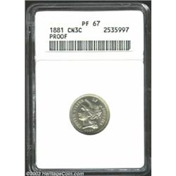 <TABLE cellSpacing=0 cellPadding=0 width="100%" bgColor=#000000 border=0><TBODY><TR><TD width="100%"><TABLE cellSpacing=1 cellPadding=3 width="100%" border=0><TBODY><TR><TD width="100%" bgColor=#79735c><FONT face=arial color=#ffffff size=3><B>Description</B> </FONT></TD></TR><TR><TD width="100%" bgColor=#ffffff><FONT face=arial size=2><B>1881 3CN PR67 ANACS.</B></I> Superbly preserved proof example with blue-steel surfaces. A few minute dark specks are noted, but are insignificant on this exceptional example. </FONT></TD></TR></TBODY></TABLE></TD></TR></TBODY></TABLE><BR><A name=PricesRealized></A><TABLE cellSpacing=0 cellPadding=0 width="100%" bgColor=#000000 border=0><TBODY><TR><TD width="100%"><TABLE cellSpacing=1 cellPadding=3 width="100%" border=0><TBODY><TR><TD width="100%" bgColor=#79735c><A name=PR><FONT face=arial color=#ffffff size=3><B>Previous Prices from Heritage Auctions</B> </FONT></A></TD></TR><TR><TD bgColor=#f6f6ed><TABLE cellSpacing=0 cellPadding=0 width="100%" border=1><TBODY><TR><TD align=middle width="33%"><B>Date</B></TD><TD align=middle width="33%"><B>Service</B></TD><TD align=middle width="33%"><B>Price</B></TD></TR><TR bgColor=whitesmoke><TD width="33%"><B>10/16/2001</B></TD><TD width="33%">PCGS</TD><TD width="33%">$1,150.00</TD></TR><TR bgColor=whitesmoke><TD width="33%"><B>11/21/2000</B></TD><TD width="33%">PCGS</TD><TD width="33%">$1,000.00</TD></TR><TR bgColor=whitesmoke><TD width="33%"><B>06/06/1997</B></TD><TD width="33%">PCGS</TD><TD width="33%">$862.50</TD></TR><TR bgColor=whitesmoke><TD width="33%"><B>09/28/2002</B></TD><TD width="33%">NGC</TD><TD width="33%">$1,035.00</TD></TR><TR bgColor=whitesmoke><TD width="33%"><B>06/08/2002</B></TD><TD width="33%">PCGS</TD><TD width="33%">$1,092.50</TD></TR><TR bgColor=whitesmoke><TD width="33%"><B>01/11/2003</B></TD><TD width="33%">PCGS</TD><TD width="33%">$1,063.75</TD></TR><TR bgColor=whitesmoke><TD width="33%"><B>08/09/2000</B></TD><TD width="33%">PCGS</TD><TD width="33%">$1,265.00</TD></TR><TR bgColor=whitesmoke><TD width="33%"><B>03/01/2000</B></TD><TD width="33%">NGC</TD><TD width="33%">$978.00</TD></TR></TBODY></TABLE></TD></TR><TR><TD bgColor=#ffffff><FONT face=arial size=1 ?>PLEASE NOTE: All prices realized reflect the final hammer price PLUS the buyer's premium in auctions that charge a buyer's premium. Each item has a notation at the top of the listing indicating whether that lot included a buyer's premium. Example: A item that sells with a final hammer price of $100 and a 20% buyer's premium will display with a price realized of $120. All information listed is intended to be as accurate as possible, but errors are possible. Please use this guide carefully and inform us of any inaccuracies. </FONT></TD></TR></TBODY></TABLE></TD></TR></TBODY></TABLE><BR><TABLE cellSpacing=0 cellPadding=0 width="100%" bgColor=#000000 border=0><TBODY><TR><TD width="100%"><TABLE cellSpacing=1 cellPadding=3 width="100%" border=0><TBODY><TR><TD width="100%" bgColor=#79735c colSpan=6><FONT face=arial color=#ffffff size=3><B>Price Guide*</B> </FONT></TD></TR><TR bgColor=#f6f6ed><TD align=middle><B>Grade</B> </TD><TD align=middle><B>Coin World<BR>(Trends)</B> </TD><TD align=middle><B>Numismedia<BR>Retail</B> </TD><TD align=middle><B>Numismedia<BR>Wholesale</B> </TD><TD align=middle><B>Coin<BR>Universe</B> </TD><TD align=middle><B>Heritage<BR>Value Index</B> </TD></TR><TR bgColor=#ffffff><TD align=middle>66</TD><TD align=right>$725.00</TD><TD align=right>$840.00</TD><TD align=right>$675.00</TD><TD align=right>$750.00</TD><TD align=right>$527.50</TD></TR><TR style="FONT-WEIGHT: bold" bgColor=#cccfdd><TD align=middle>67</TD><TD align=right>---</TD><TD align=right>---</TD><TD align=right>$1,100.00</TD><TD align=right>$1,450.00</TD><TD align=right>$987.50</TD></TR><TR bgColor=#ffffff><TD align=middle>68</TD><TD align=right>---</TD><TD align=right>---</TD><TD align=right>---</TD><TD align=right>---</TD><TD align=right>---</TD></TR><TR bgColor=#ffffff><TD colSpan=6><FONT size=1>*All information listed is intended to be as accurate as possible, but errors are possible. No item may be returned or refused based on this information which is provided as a service to our customers. You should contact each pricing source directly to determine the accuracy of this information. </FONT></TD></TR></TBODY></TABLE></TD></TR></TBODY></TABLE><BR><TABLE cellSpacing=0 cellPadding=0 width="100%" bgColor=#000000 border=0><TBODY><TR><TD width="100%"><TABLE cellSpacing=1 cellPadding=3 width="100%" border=0><TBODY><TR><TD width="100%" bgColor=#79735c><FONT face=arial color=#ffffff size=3><B>Population Guide</B> </FONT></TD></TR><TR bgColor=#ffffff><TD align=middle><!-- Begin Output of Population Grid--><TABLE cellSpacing=0 cellPadding=0 width="100%" border=0><TBODY><TR><TD vAlign=center><TABLE cellSpacing=0 width="100%" border=1 cellsadding="3"><TBODY><TR><TD vAlign=center><TABLE cellSpacing=0 cellPadding=3 width="100%" border=1><TBODY><TR><TD vAlign=center align=middle bgColor=#f0f1e8 colSpan=2 <CENTER><FONT face=Arial size=2><B>PCGS Pop </B></FONT><CENTER></CENTER></TD><TD vAlign=center align=middle bgColor=#f0f1e8 colSpan=2><CENTER><FONT face=Arial size=2><B>NGC Pop</B></CENTER></FONT></TD></TR><TR><TD vAlign=center><FONT face=Arial size=2>(67)</FONT> </TD><TD vAlign=center align=right><FONT face=Arial size=2>63</FONT> </TD><TD vAlign=center><FONT face=Arial size=2>(67)</FONT> </TD><TD vAlign=center align=right><FONT face=Arial size=2>42</FONT> </TD></TR><TR><TD vAlign=center><FONT face=Arial size=2>(>67)</FONT> </TD><TD vAlign=center align=right><FONT face=Arial size=2>5</FONT> </TD><TD vAlign=center><FONT face=Arial size=2>(>67)</FONT> </TD><TD vAlign=center align=right><FONT face=Arial size=2>7</FONT> </TD></TR></TBODY></TABLE></TD></TR></TBODY></TABLE></TD></TR></TBODY></TABLE><!-- End Output of Population Grid--> Important notice: Heritage usually auctions material at the rate of 200-250 lots per hour. On some occasions eBay Live bid software or th