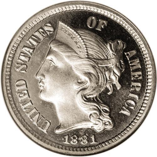<B>1881 3CN PR68 Cameo NGC.</B></I> The 1881 business strike three cent nickel issue was the last great gasp in this archetypal 19th century series, produced to the extent of more than 1 million pieces. Subsequent business strike mintages toward the series' end in 1889 never again topped 40,000 pieces. Annual business strike mintages were as low as 1,000 coins, sometimes even less than the proof mintages. In 1881 the proof mintage was a more consistent 3,575 pieces. The present untoned silver-white specimen is among the handful or so finest at either service, with exuberantly frosted devices and sparkling mirrored fields. The lower loops of the 8s are frosted, and recutting shows at the base of the first 1. Census: 7 in 68 Cameo, 0 finer (10/06).<BR><BR><b>Shipping:</b> Coin/Currency (<a target="_blank" href="http://www.heritageauctions.com/common/shipping.php">view shipping information</a>)