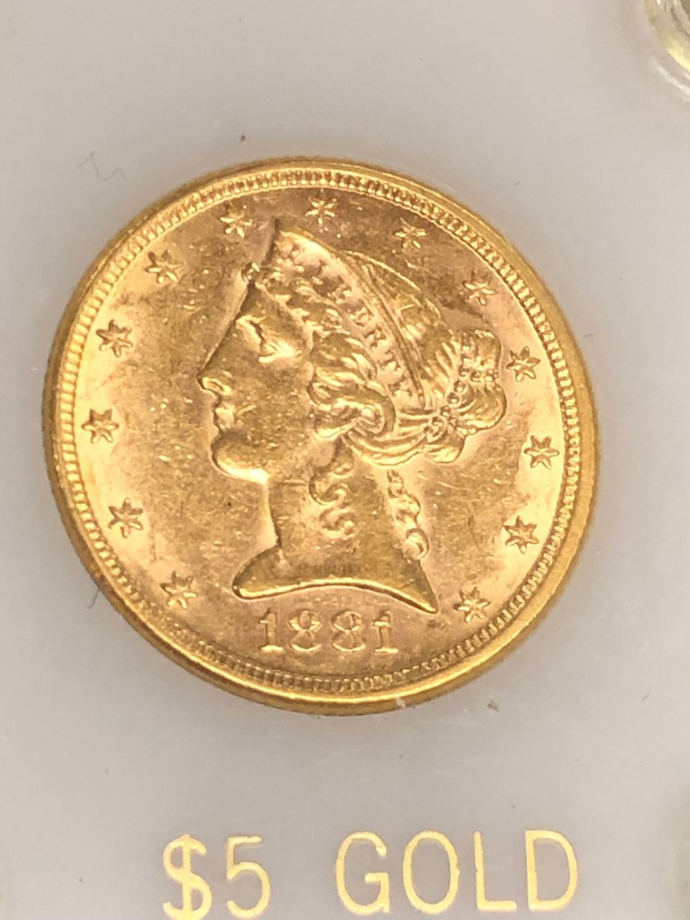 1881 $5.00 US Gold Half Eagle, very nice condition.