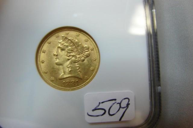1881 $5.00 Liberty Head Gold Coin NGC MS 62