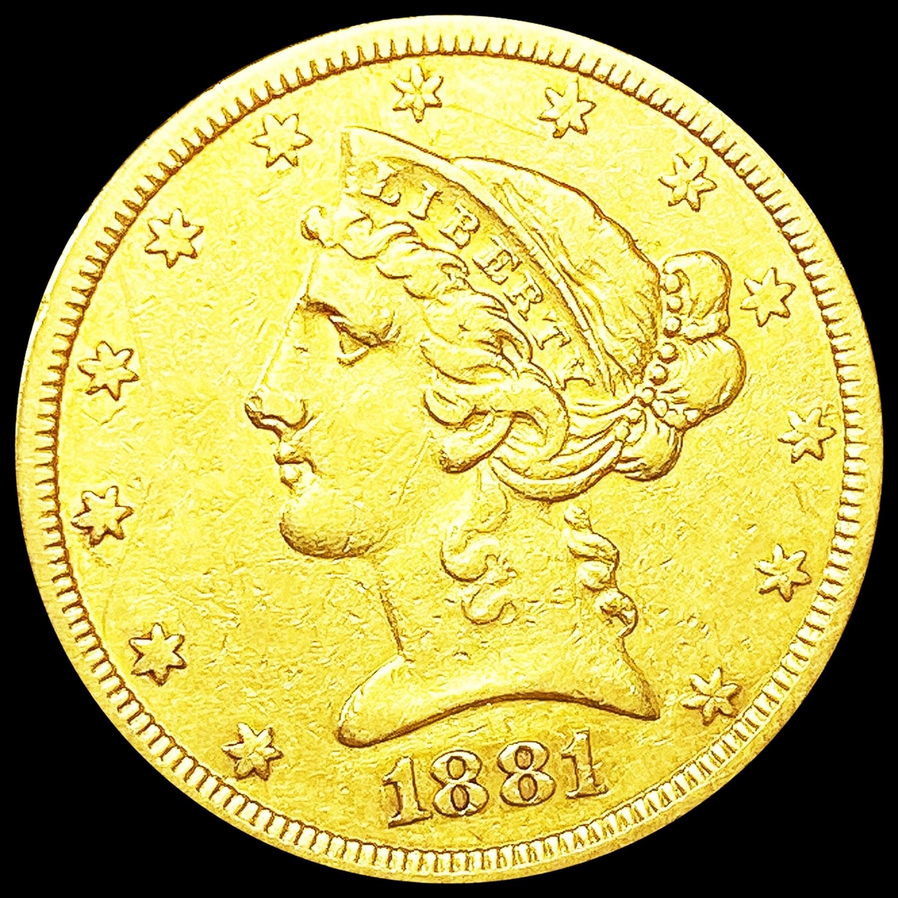 1881 $5 Gold Half Eagle ABOUT UNCIRCULATED