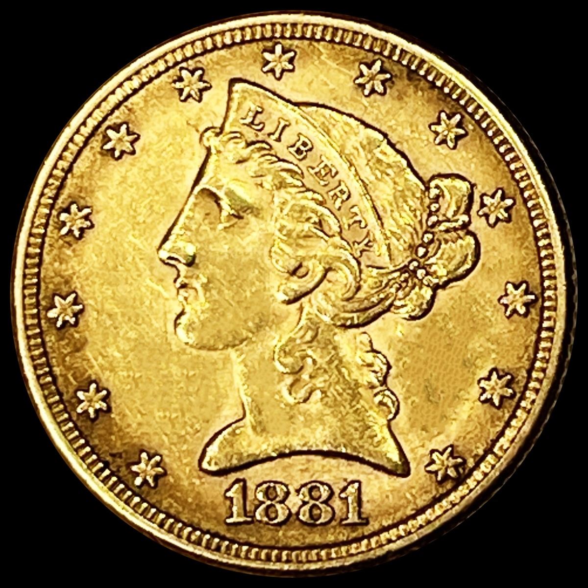 1881 $5 Gold Half Eagle CLOSELY UNCIRCULATED