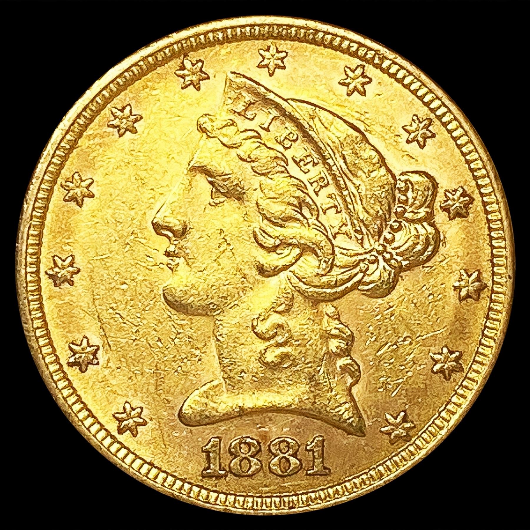 1881 $5 Gold Half Eagle CLOSELY UNCIRCULATED