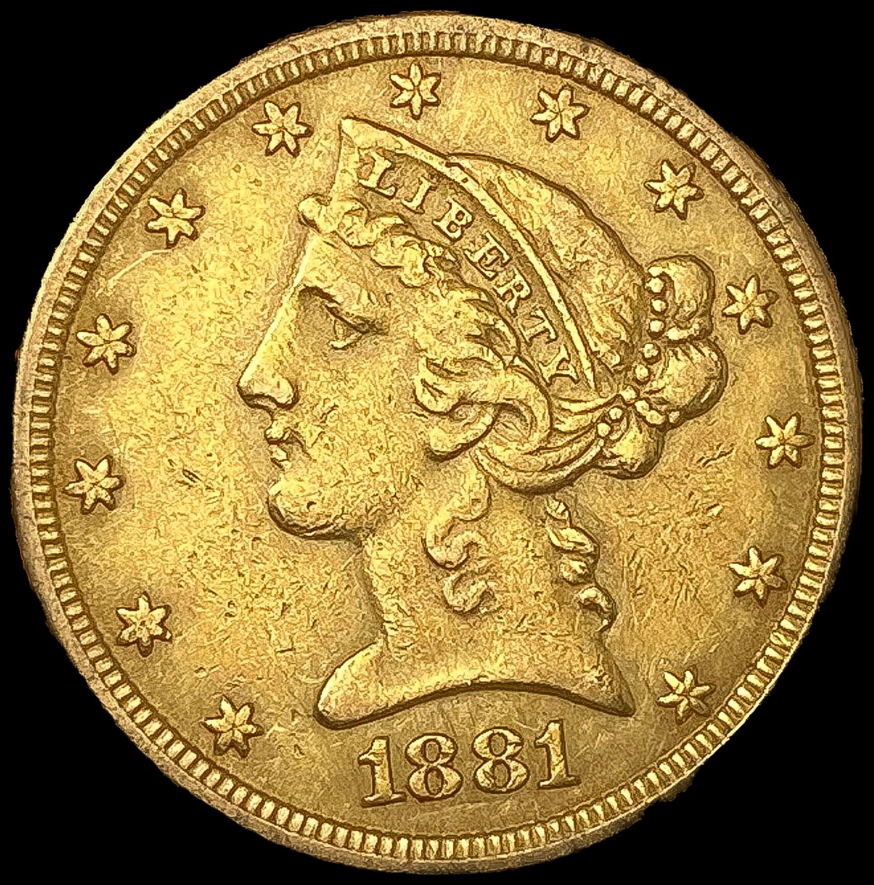 1881 $5 Gold Half Eagle CLOSELY UNCIRCULATED