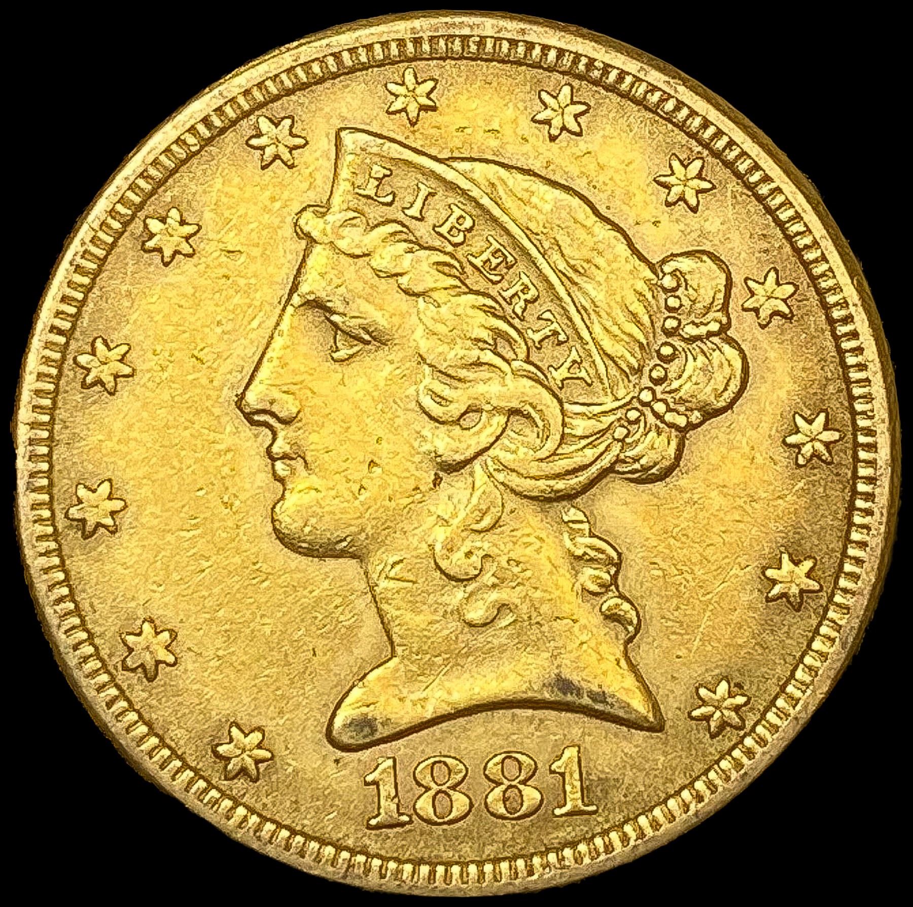 1881 $5 Gold Half Eagle CLOSELY UNCIRCULATED