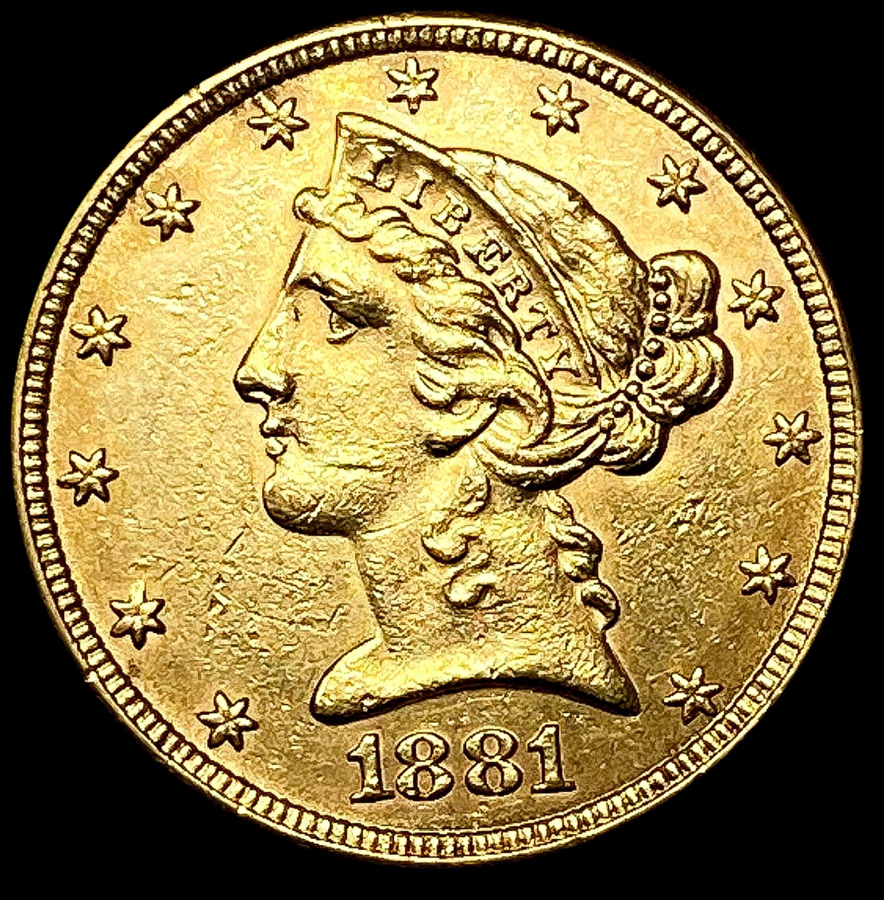 1881 $5 Gold Half Eagle CLOSELY UNCIRCULATED