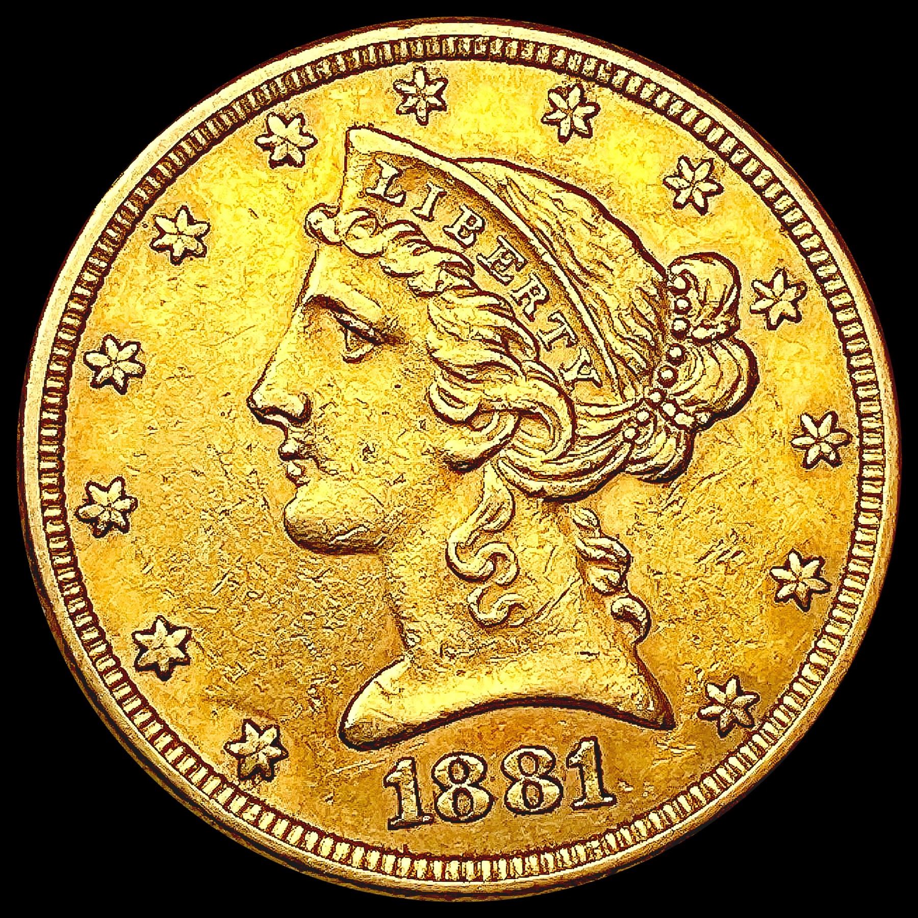 1881 $5 Gold Half Eagle CLOSELY UNCIRCULATED