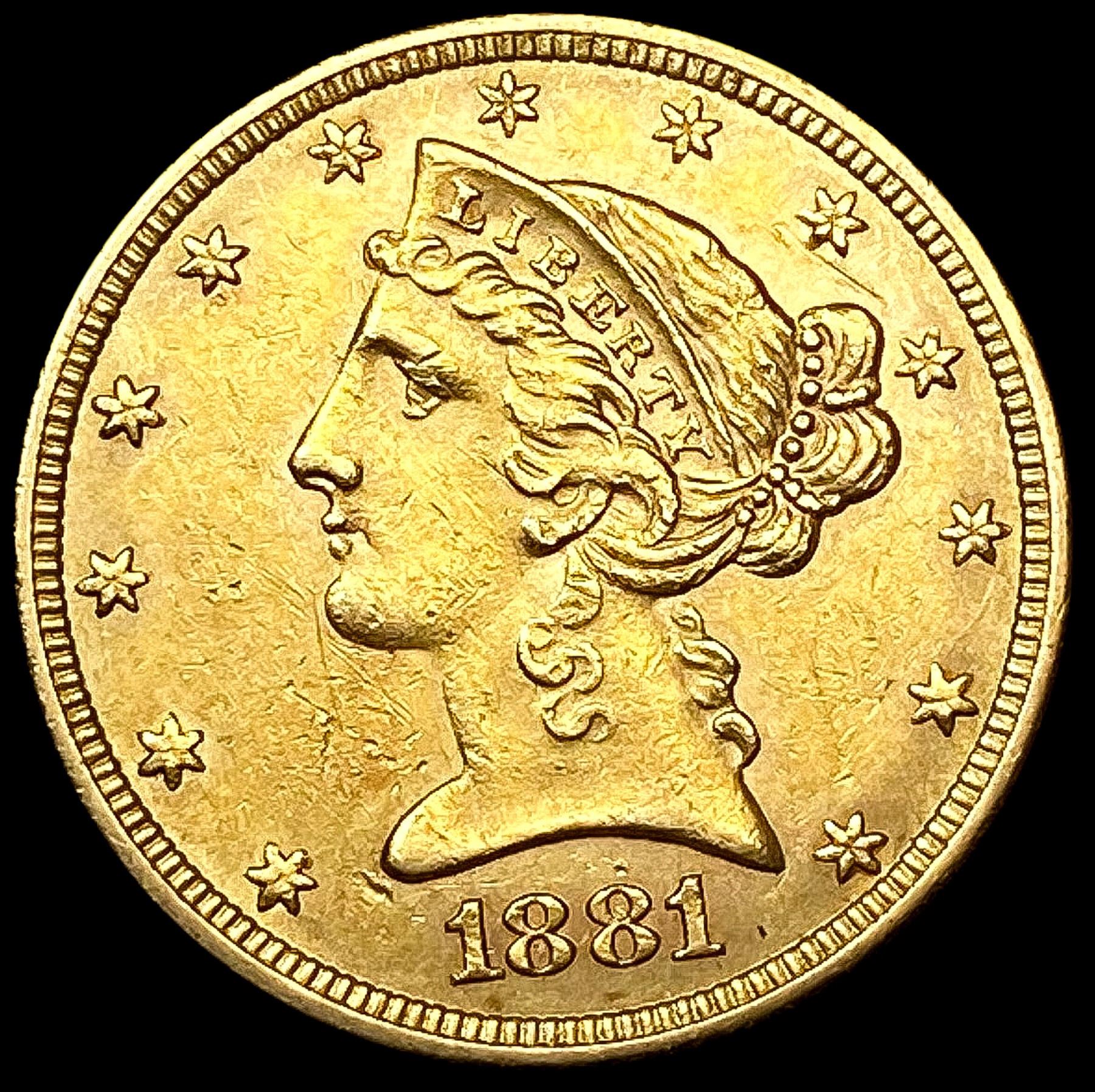 1881 $5 Gold Half Eagle CLOSELY UNCIRCULATED