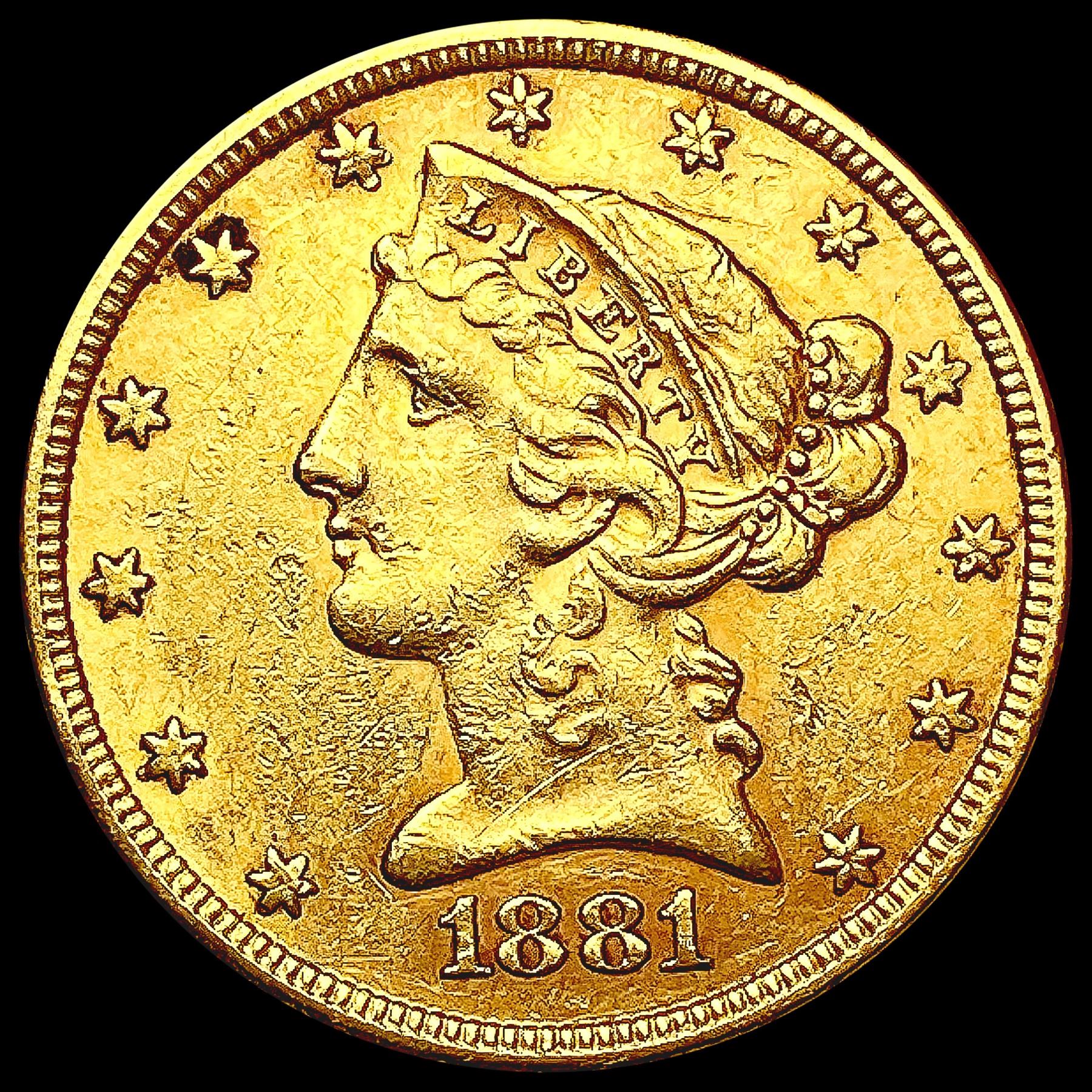 1881 $5 Gold Half Eagle CLOSELY UNCIRCULATED
