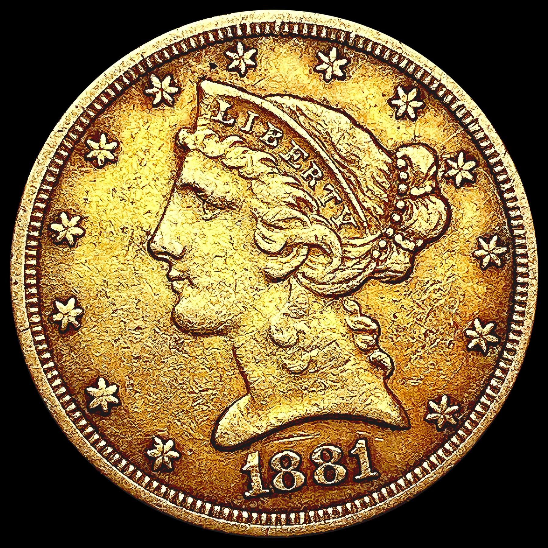 1881 $5 Gold Half Eagle CLOSELY UNCIRCULATED