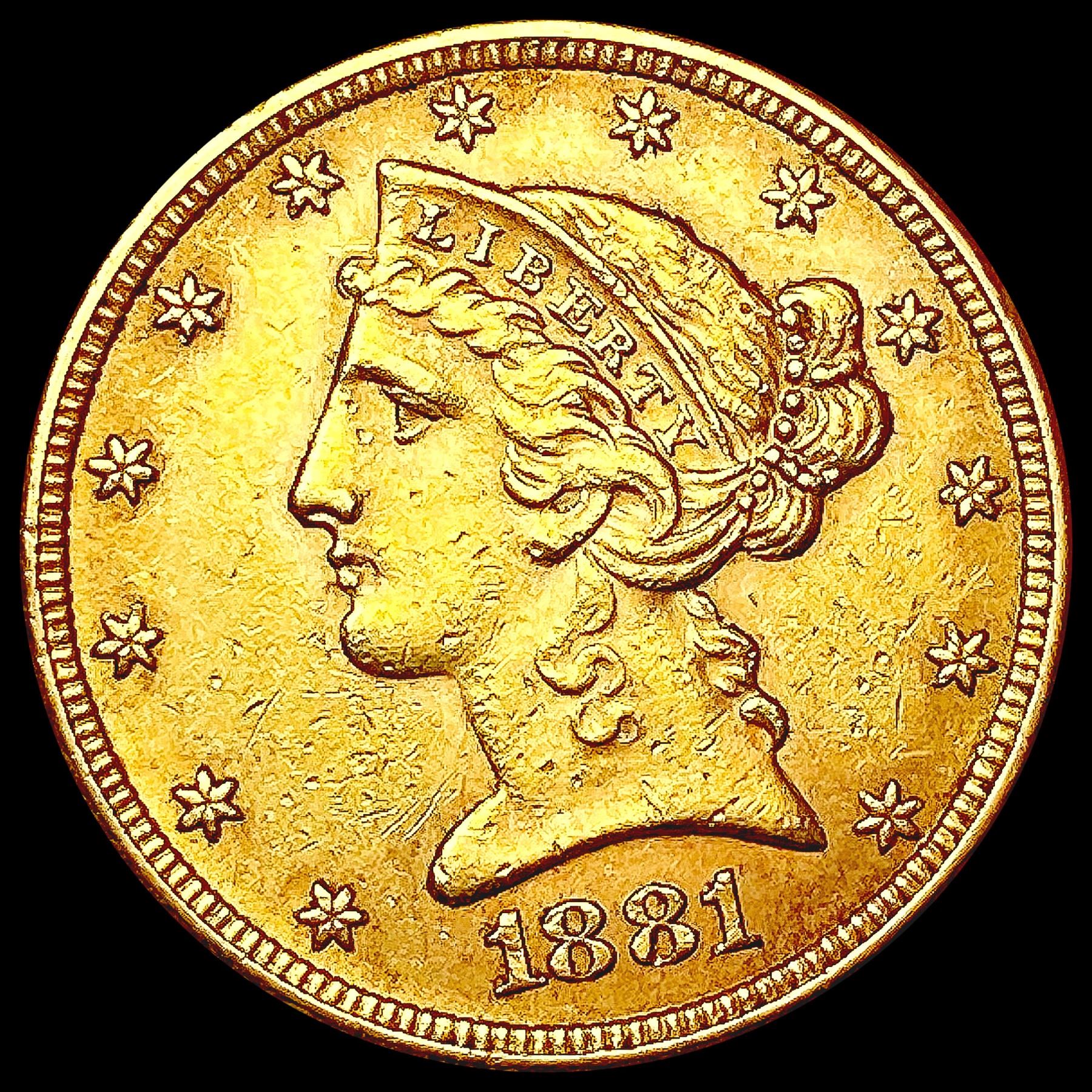 1881 $5 Gold Half Eagle CLOSELY UNCIRCULATED
