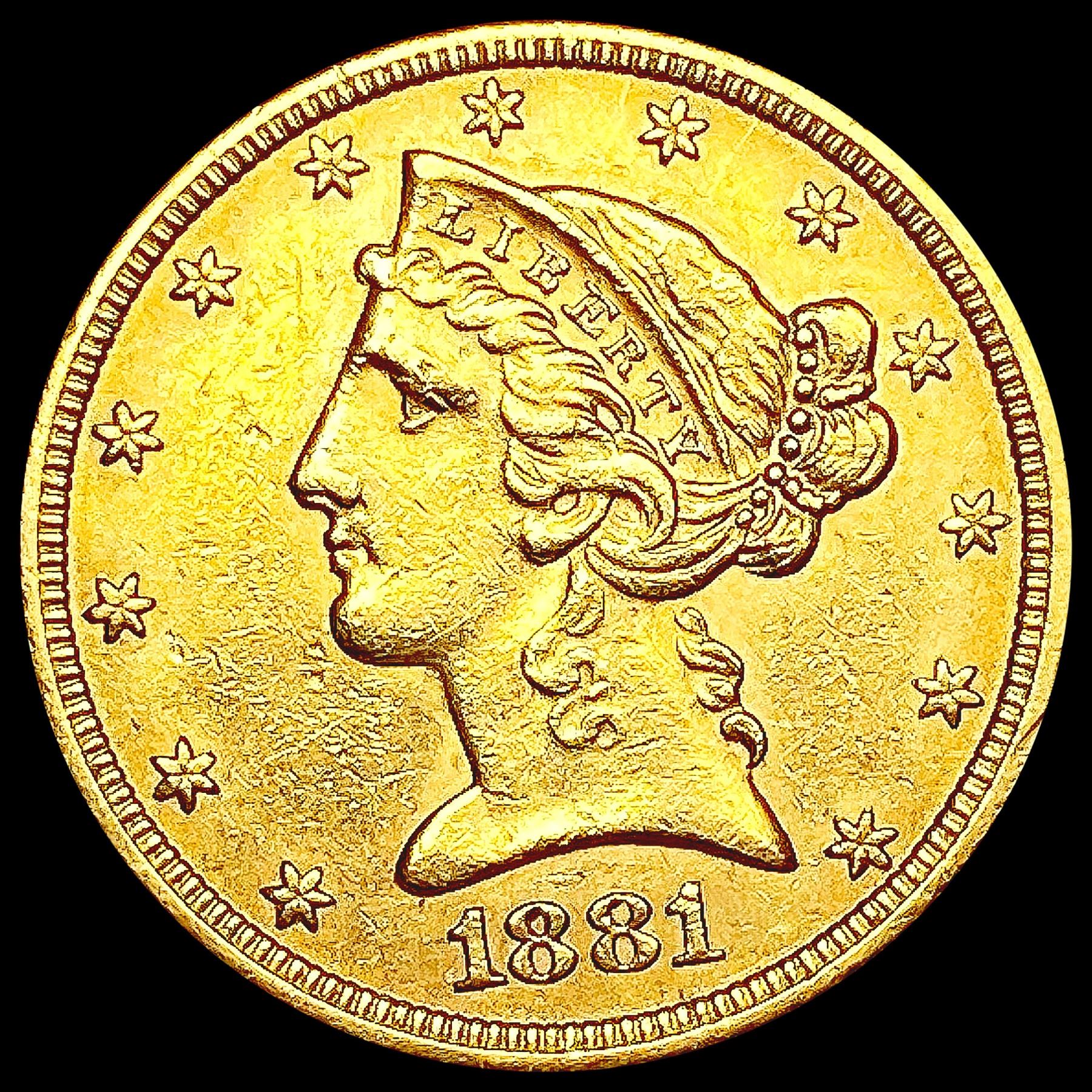 1881 $5 Gold Half Eagle CLOSELY UNCIRCULATED