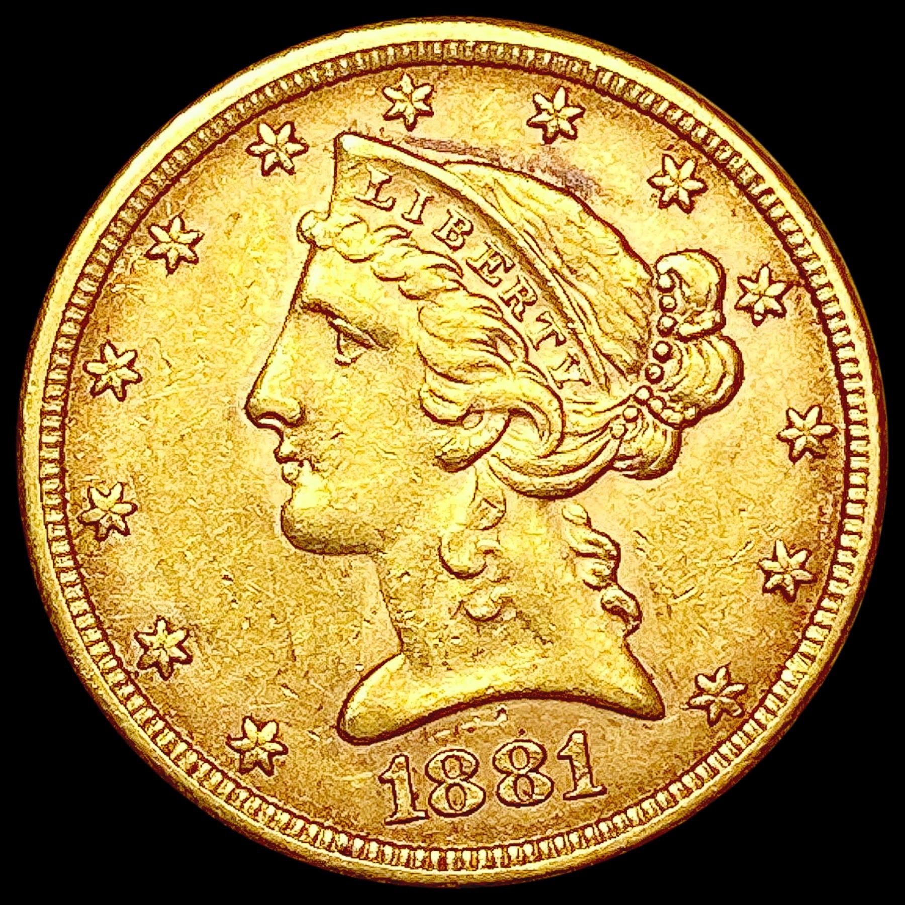1881 $5 Gold Half Eagle CLOSELY UNCIRCULATED