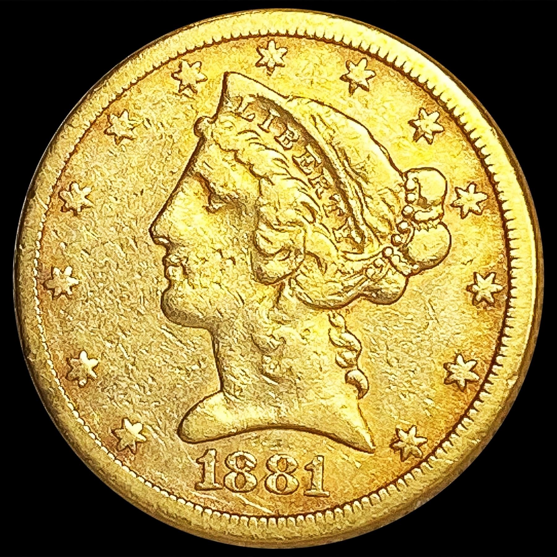 1881 $5 Gold Half Eagle LIGHTLY CIRCULATED