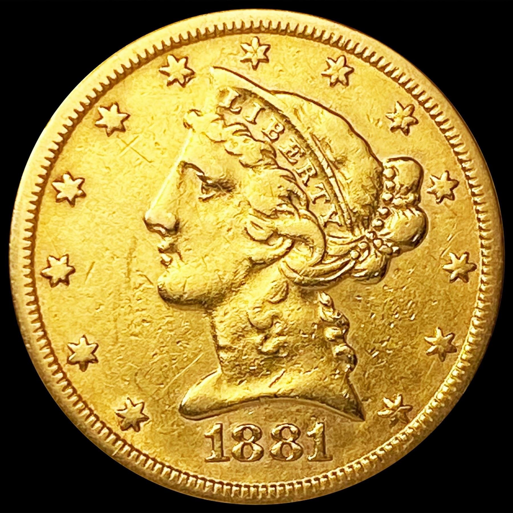 1881 $5 Gold Half Eagle LIGHTLY CIRCULATED