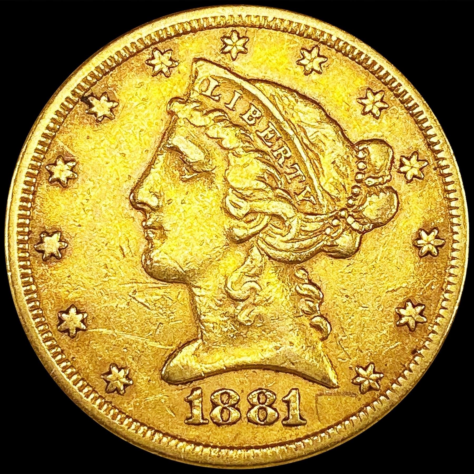 1881 $5 Gold Half Eagle NEARLY UNCIRCULATED