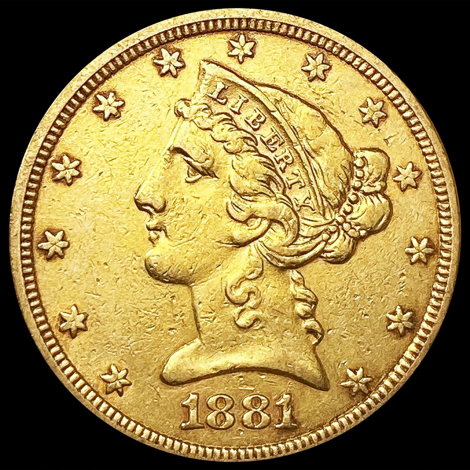 1881 $5 Gold Half Eagle NEARLY UNCIRCULATED