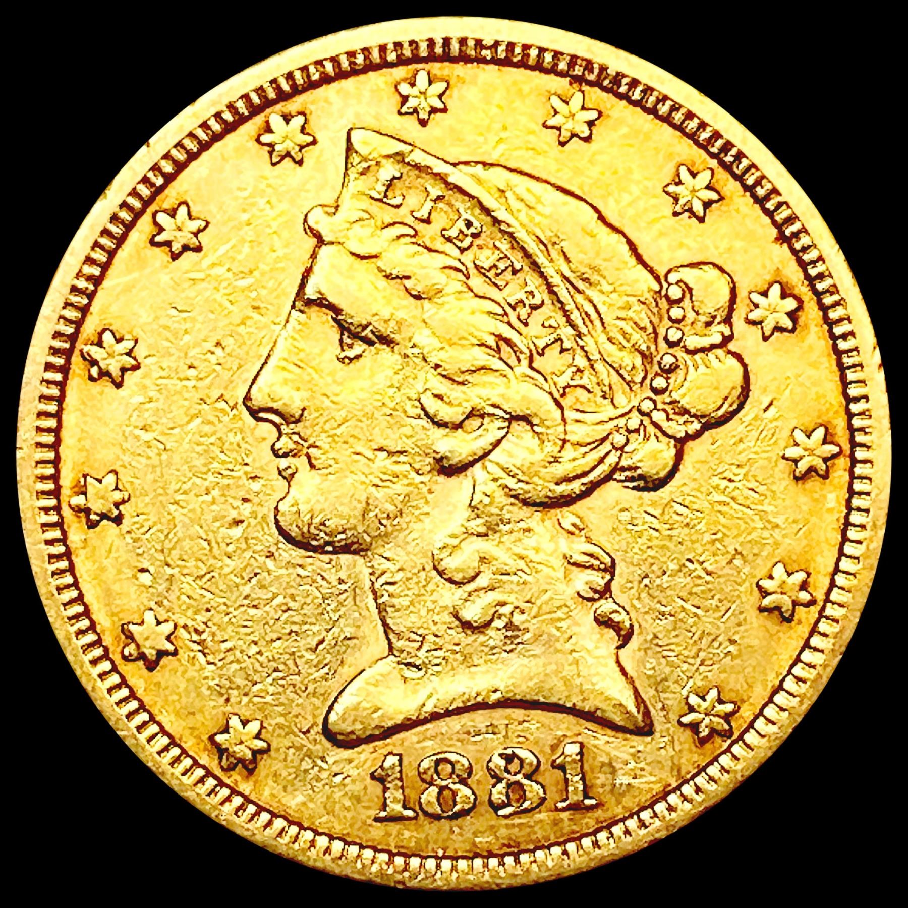 1881 $5 Gold Half Eagle NEARLY UNCIRCULATED