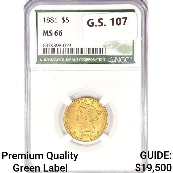 1881 $5 Gold Half Eagle NGC MS66