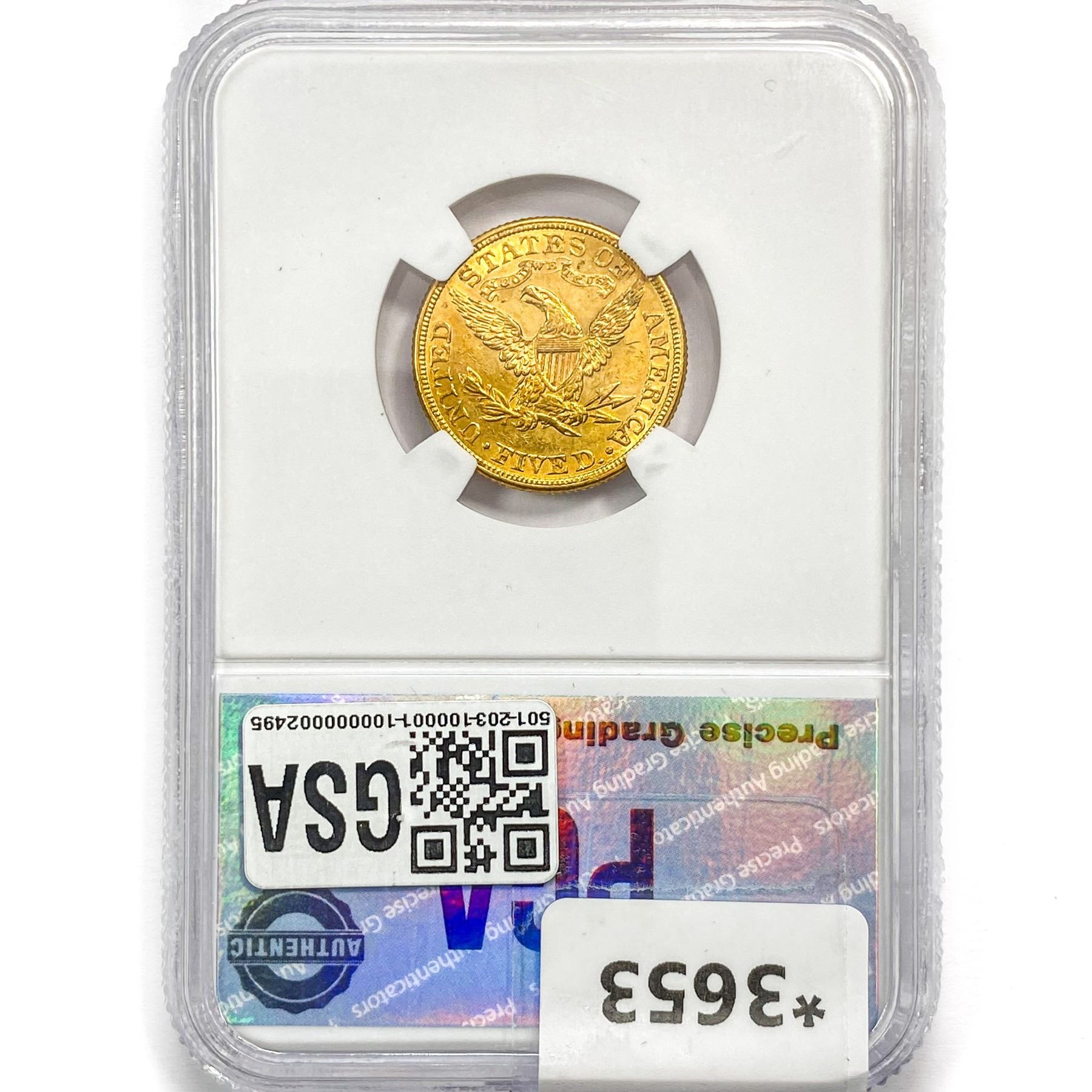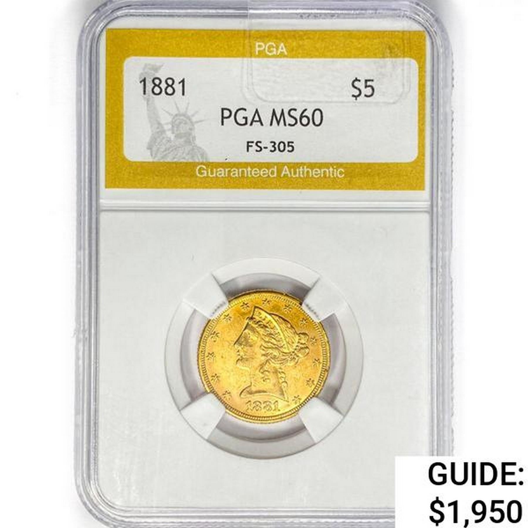 1881 $5 Gold Half Eagle PGA MS60 FS-305