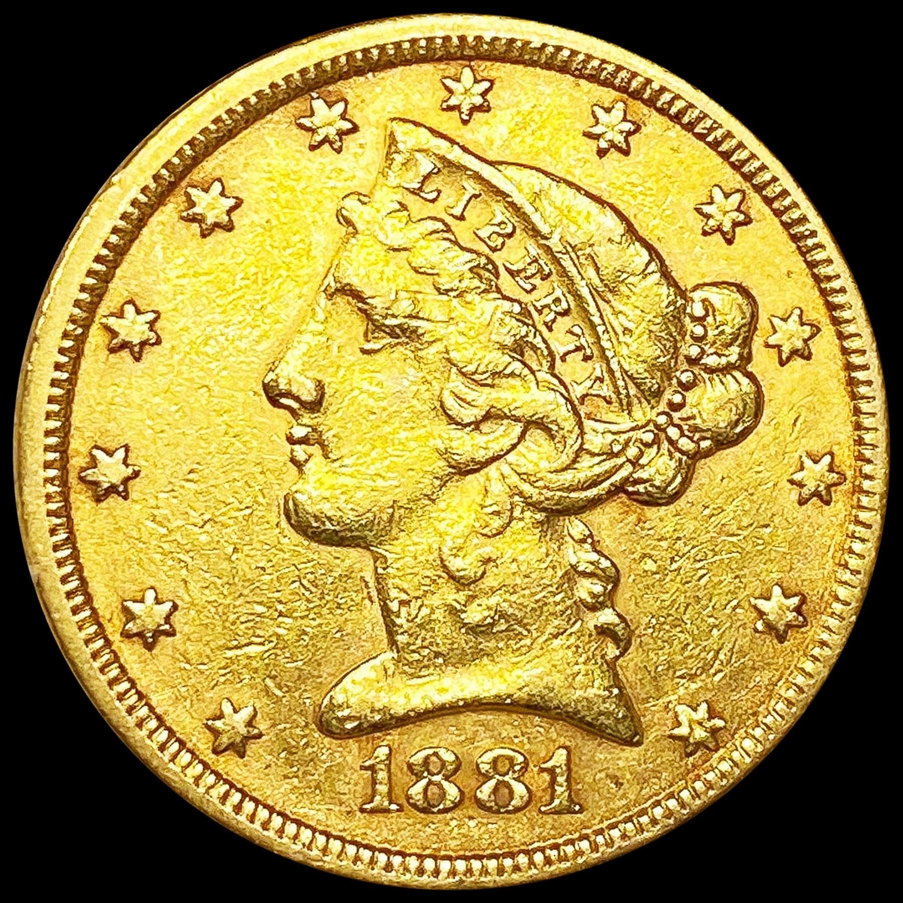 1881 $5 Gold Half Eagle UNCIRCULATED