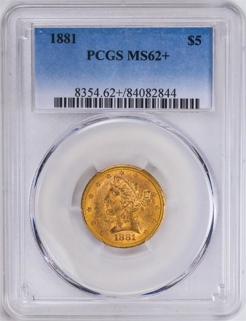 One 1881 $5 Liberty Head Half Eagle Gold Coin PCGS MS62+.