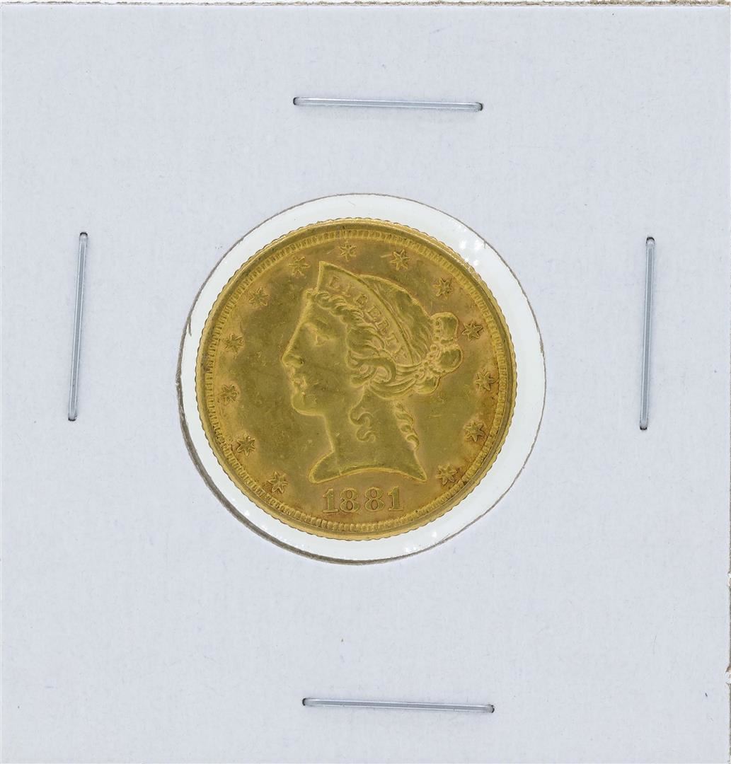 One 1881 $5 Liberty Head Half Eagle Gold Coin.
