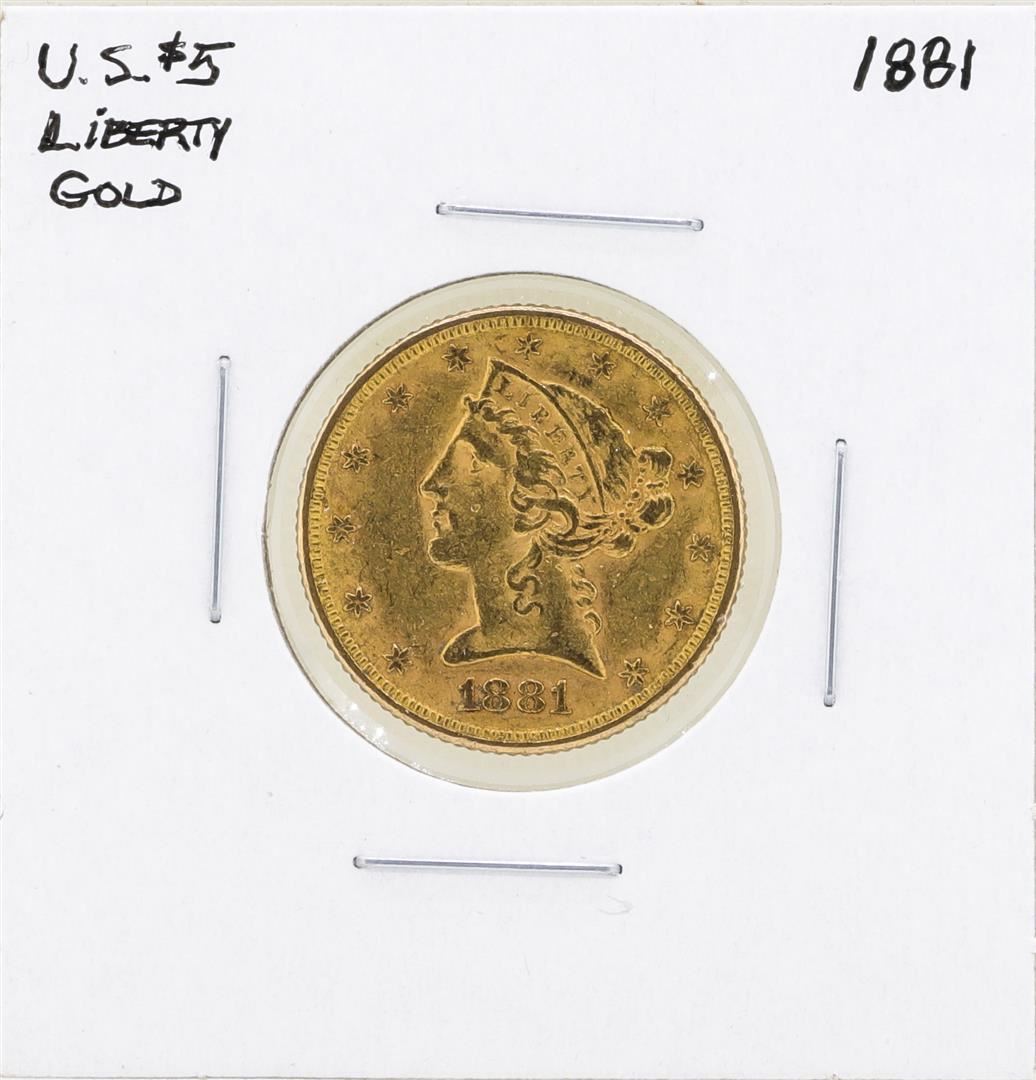 One 1881 $5 Liberty Head Half Eagle Gold Coin.