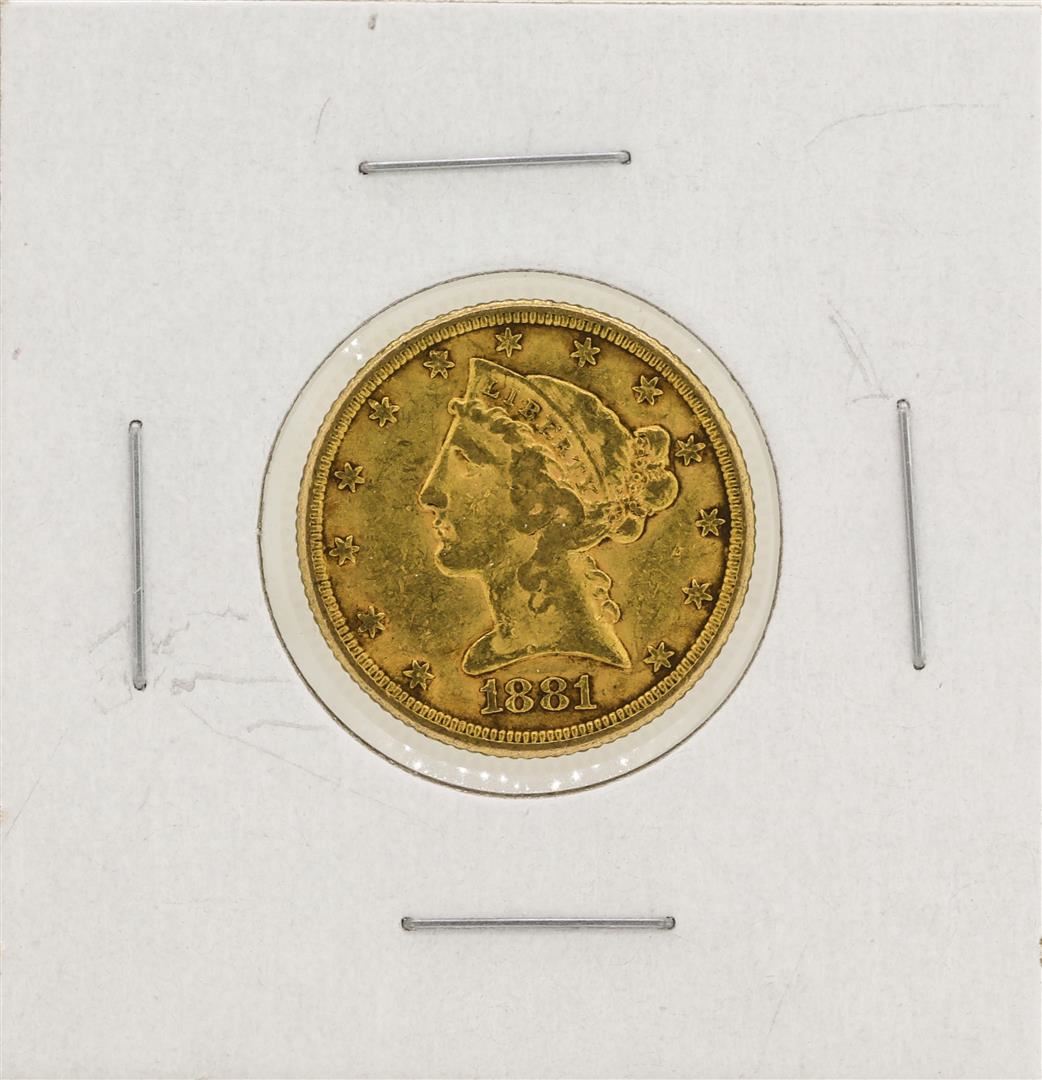 One 1881 $5 Liberty Head Half Eagle Gold Coin.
