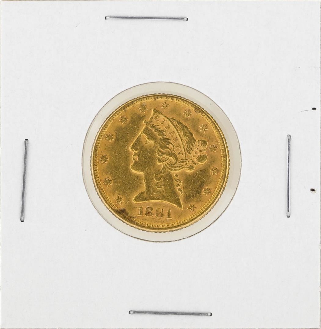 One 1881 $5 Liberty Head Half Eagle Gold Coin.