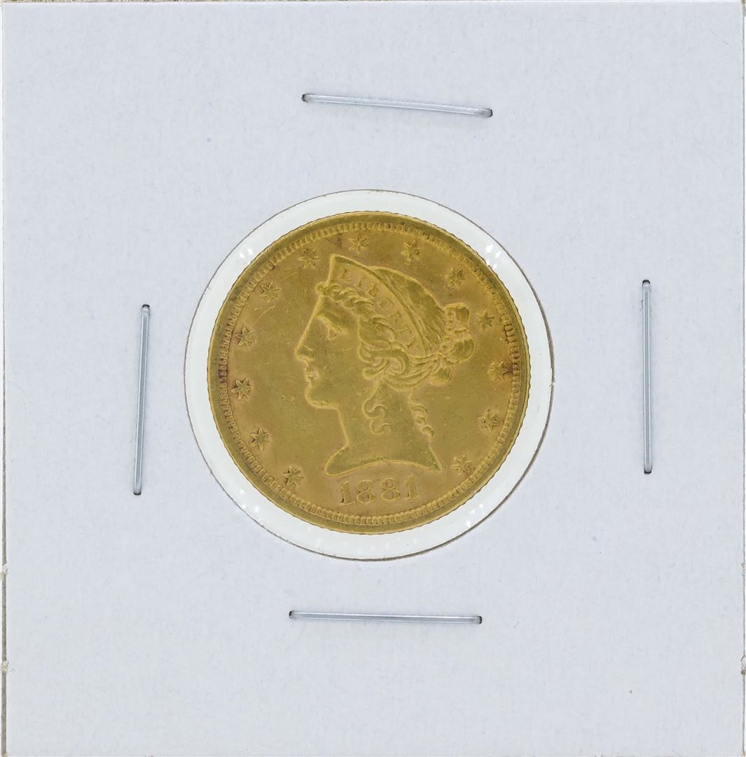 One 1881 $5 Liberty Head Half Eagle Gold Coin.