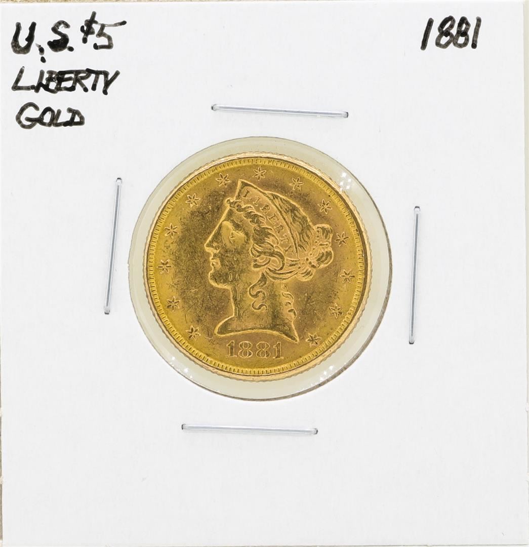 One 1881 $5 Liberty Head Half Eagle Gold Coin.