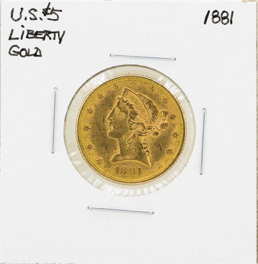 One 1881 $5 Liberty Head Half Eagle Gold Coin.