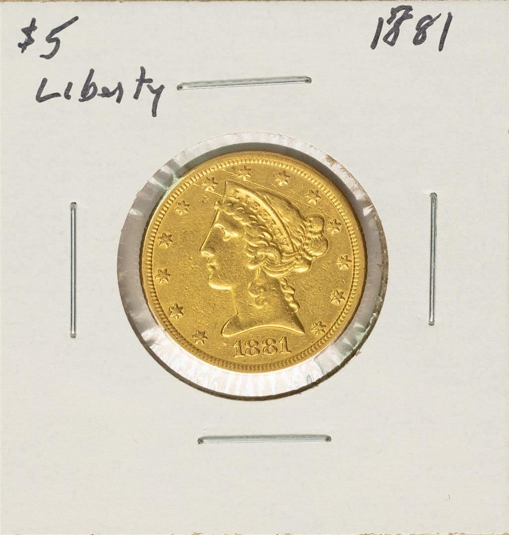 One 1881 $5 Liberty Head Half Eagle Gold Coin.