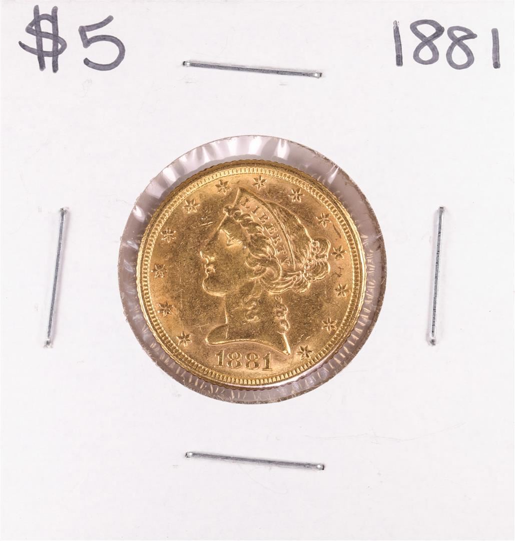 One 1881 $5 Liberty Head Half Eagle Gold Coin.