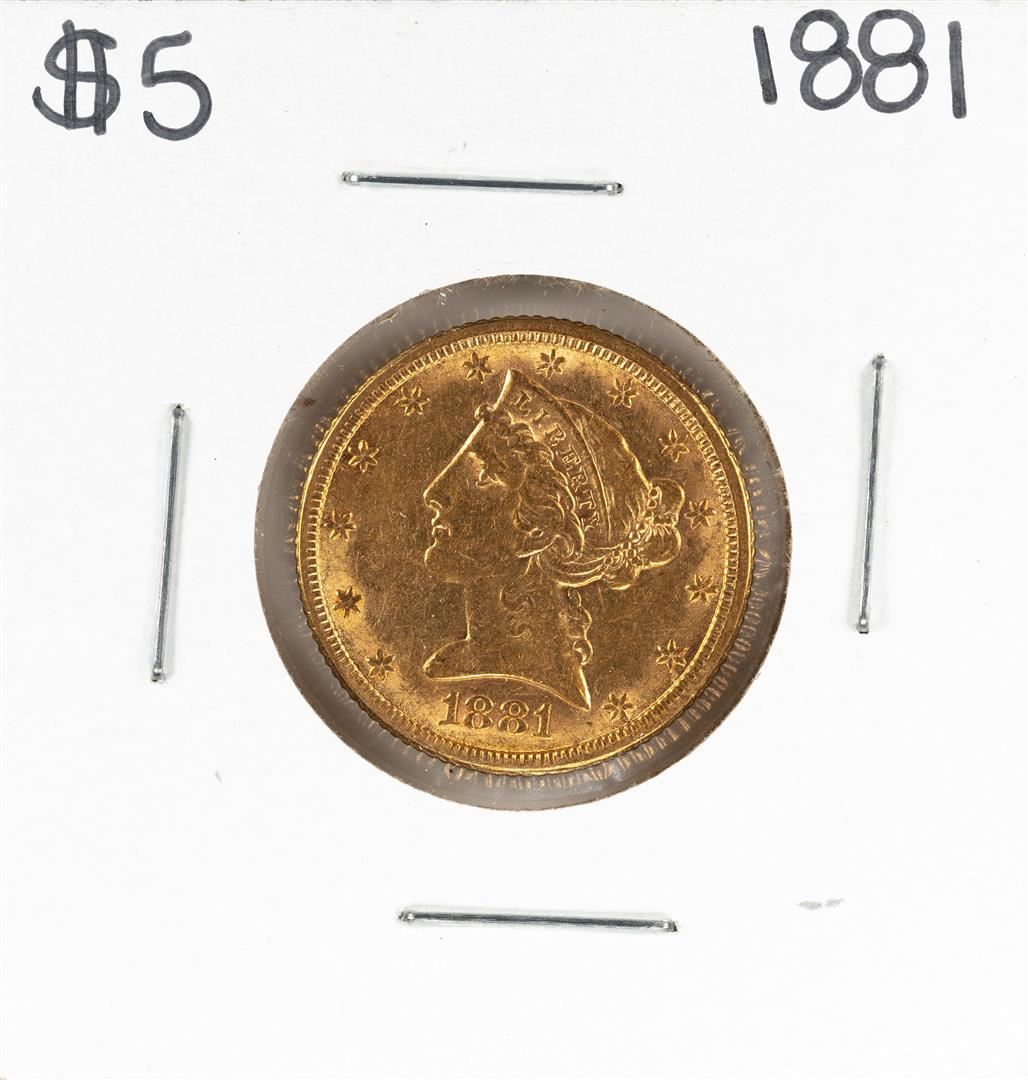 One 1881 $5 Liberty Head Half Eagle Gold Coin.