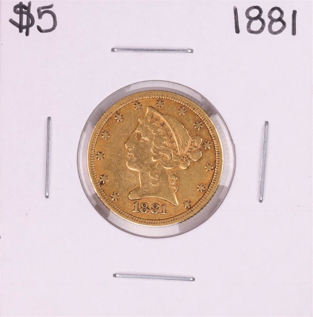 One 1881 $5 Liberty Head Half Eagle Gold Coin.