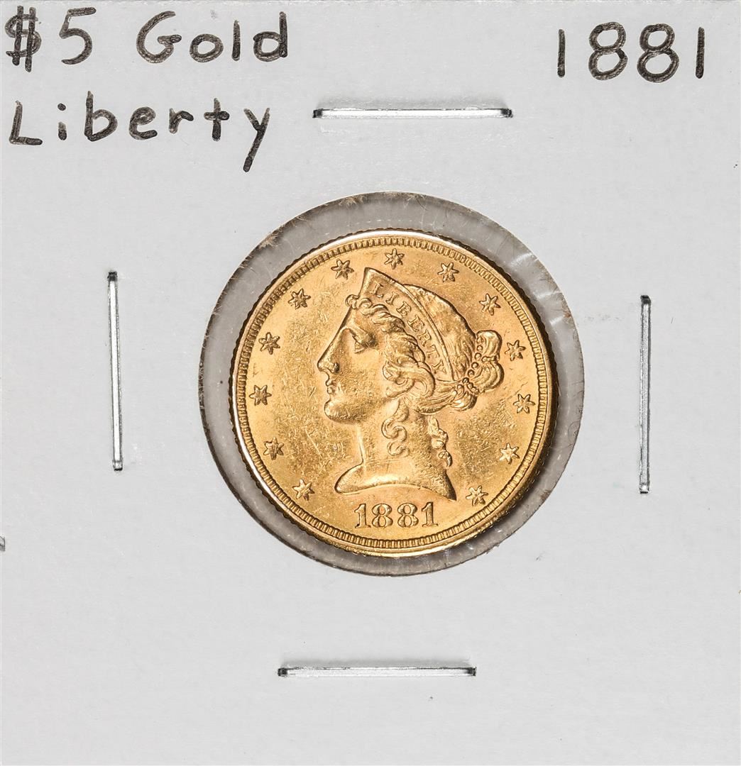 One 1881 $5 Liberty Head Half Eagle Gold Coin.